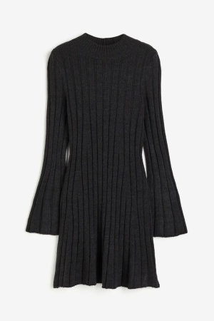 Short, fitted dress in ribbed jersey with a round neckline, short sleeves and a straight-cut hem.